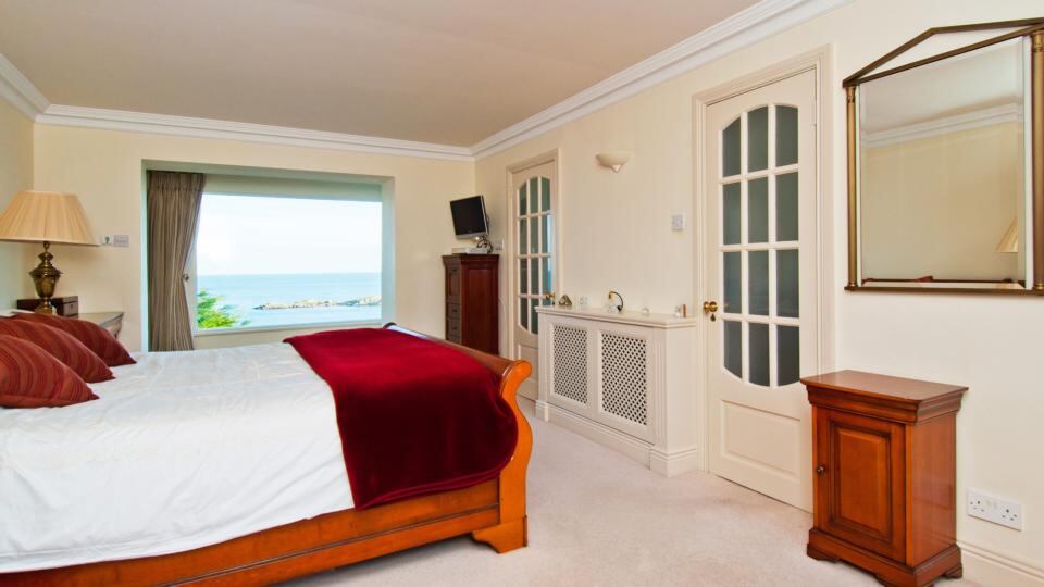 Ard na Carraige is just above Coliemore Harbour, overlooking Dalkey Island. Built on three levels (you enter at the middle), it hugs the hill, so that every room – including the dramatic en suite to the master bedroom – has a vista of the sea and the island.