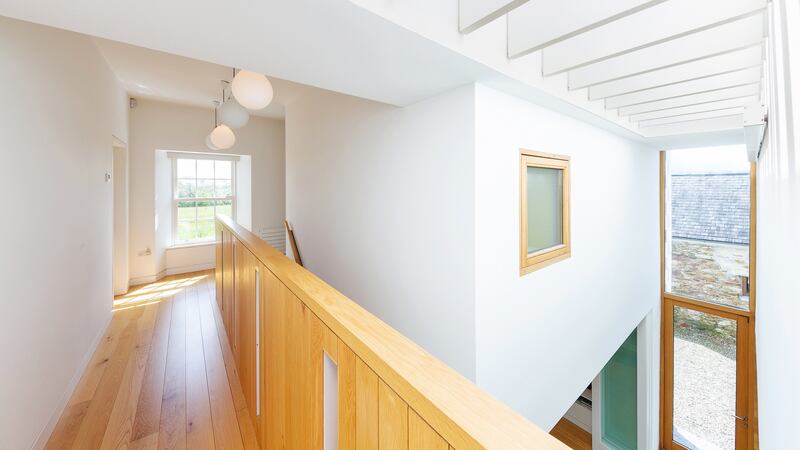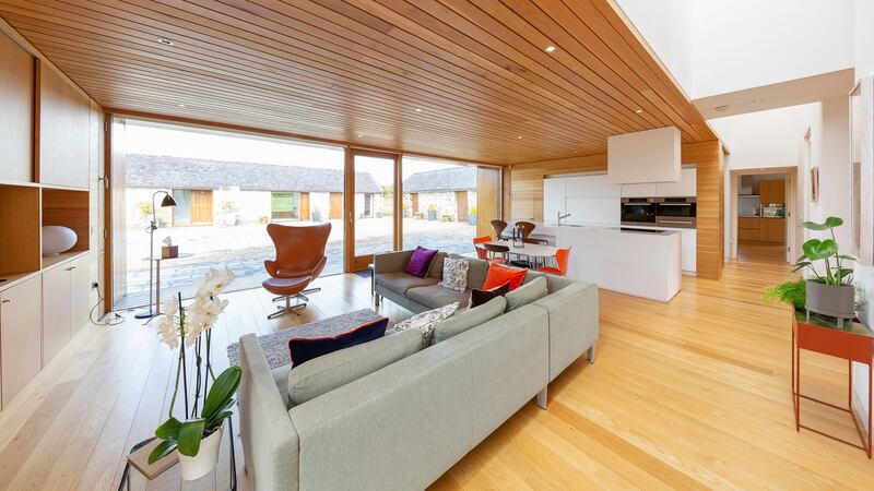 The result is a restrained 416sq m (4,477sq ft) contemporary home connected to the rear wraparound courtyard with its original slate and stone buildings. The rear of the original house was dismantled and in its place a double height box extension added. The Colfers have loved living here, but Eoin says Ballymorris is no longer what they need.