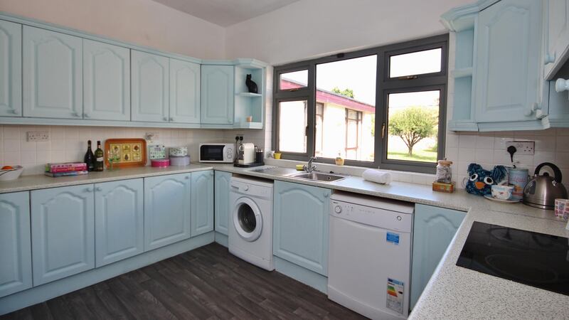 High, 2.8m ceilings, bay windows, a solid structure and a 31.5m-long rear garden are enduring features of Lee Cote’s origins. With off-street parking to the front and an attic awaiting conversion, today’s bungalow, over a 148sq m (1,593sq ft) floor space, has four bedrooms, separate dining, sitting and family rooms, kitchen, shower room and bathroom. The detached garage measures 12.5sq m (134sq ft). Agent DNG is seeking €635,000.