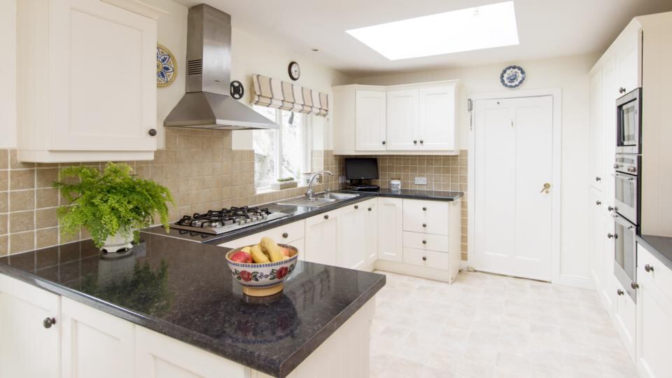 The house's exterior has been painted a pale cream which blends well with the granite and the new Marvin front door brings plenty of light into the hallway. The house is accessed by a Gothic style pedestrian gate with parking for three cars outside the property. The kitchen, despite being five years old, looks brand new and has integrated Bosch appliances, double Neff ovens and is painted in Dulux Jasmine white. A door to the rear leads to a small but manicured raised vegetable garden housing cabbages, lettuce and a variety of herbs.