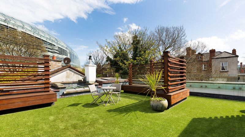One gets the feeling that entertaining on a grand scale was part of the brief, and its location under the Aviva sign makes it a perfect spot for pre- and post-rugby events. Indeed the large roof garden, a rarity in the location, could easily accommodate 50 guests.