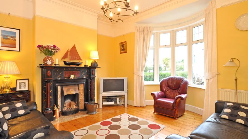 The redbrick has a good-looking porch and opens into a spacious square hall. The 179sq m (1,926sq ft) property has two interconnecting reception rooms with matching fireplaces. The bow window in the sitting room to the front looks across to St Columba's Church. Sliding doors lead through to the dining room to the rear, which has a box bay window overlooking the garden.