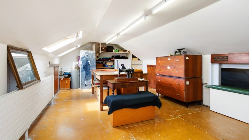 An open-tread staircase leads on up to the attic where Neillí moved her studio after she closed the South Frederick Street outlet in 1970. It's a big, airy, well-lit space with a stout work table (made with folding legs that allowed it to be brought up the stairs), Neillí's old Singer sewing machine and a rack of her creations, including signature fitted tweed dresses and a fantastic full-length black coat lined in striped fabric that Paul Smith would envy.