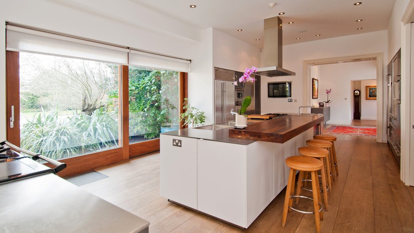 The bright modern kitchen has three rooms off it looking out over the back garden; a sunroom, another diningroom and an informal livingroom.