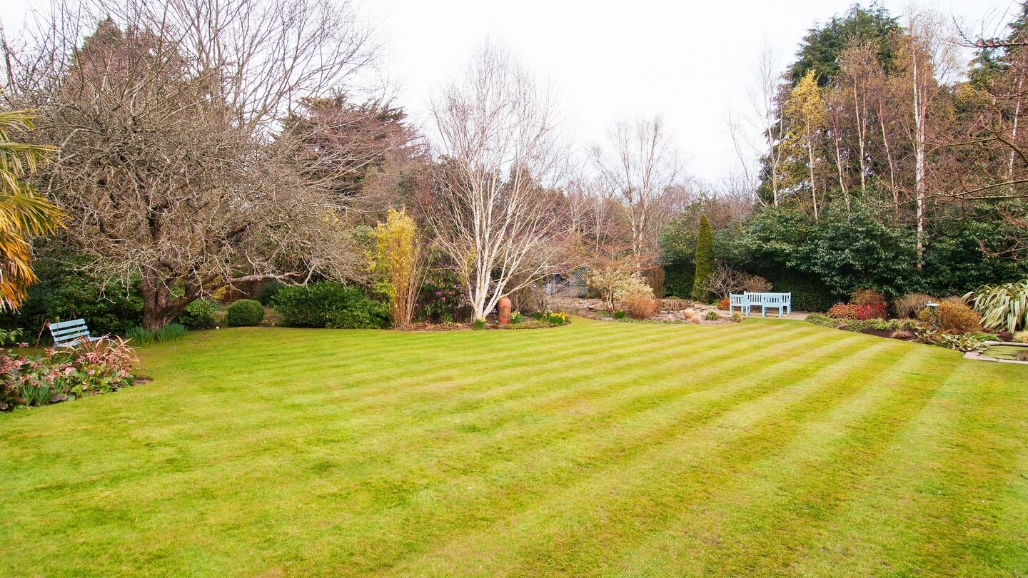 Outside the landscaping is mature now, the rear garden was designed by Diarmuid Gavin to complement the age and style of the house. It is laid out in lawn, with a large paved patio as well as hidden seating spaces, a pond and a meandering woodland walk. At the front, behind a tall hedge and electric gates is also now a mature attractive garden, as pretty as the house, and with parking for six or more cars.
