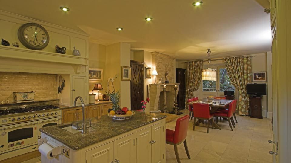The kitchen/breakfastroom downstairs has a polished marble floor and runs the depth of the house, opening through double doors at the back on to a garden terrace and through doors at the side into a hallway lined with storage space. There’s a bedroom at the back at this level, a fully-tiled shower/wetroom and a wine cellar where the original coal hole would have been under the front stairs.