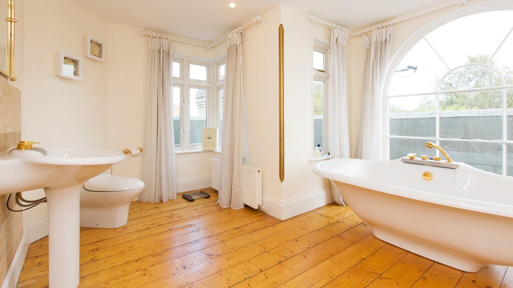 The attic has been floored and can be accessed it via fold-away stairs. On the roof, there’s a small seating area with a panoramic view over the Irish Sea from Wicklow Head to Howth.