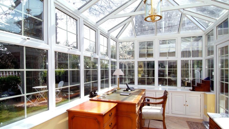 On a long, wide site, the 186sq m (2,000sq ft) house is detached and double fronted. The current owner has added a large bright contemporary kitchen/breakfast room to the right and a sunny conservatory to the left, which he uses as one of the most idyllic home offices I have come across.