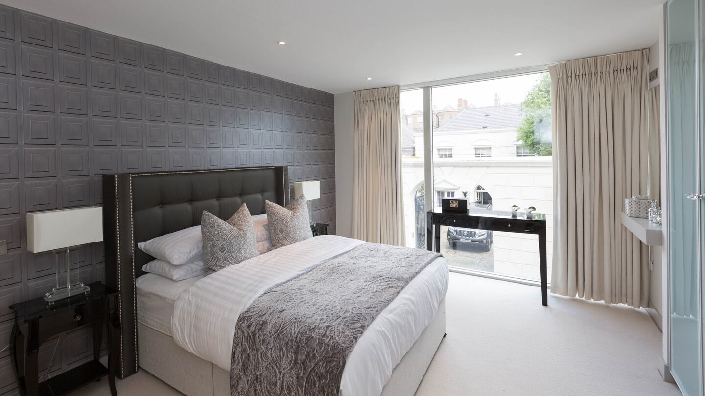 Number 18 Lower Baggot Street was a boom-time development that saw the former townhouse hotel developed into 25 apartments. Three are in the original period house with that distinctive fanlight-topped front door; the rest are in a low-rise modern block built to the rear and separated from the main house by a courtyard. Car parking is underground and residents can access all apartments through the original door on Lower Baggot Street or the newer entrance on Fitzwilliam Lane.