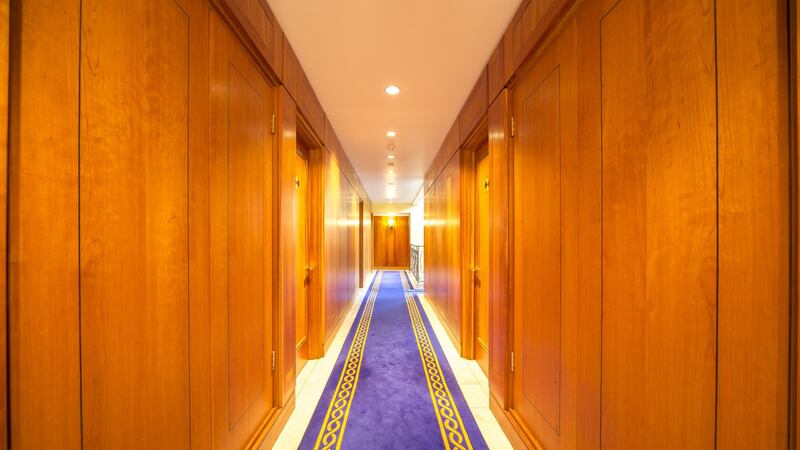 There’s a cherrywood carpentry theme throughout with Zebrano trim sourced from Morocco and ebony inlay on all of the doors. The upstairs landing, for example, resembles a ship’s corridor flush with hand-tufted carpet and cherrywood panelled walls.