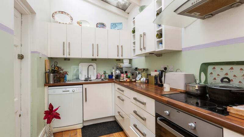 The rest of the property includes a study that leads through to a long narrow kitchen that is very bright thanks to its polycarbonate roof. There is direct access to the garden from here, too.