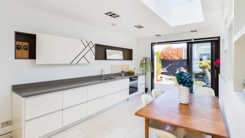 The 102sq m (1,098sq ft) property was designed by architectural firm Davy Smith. It is quite an achievement on a narrow site, and one of the most remarkable features of the property is the abundance of natural light that spills in from Velux, large picture windows and a roof light in the kitchen.