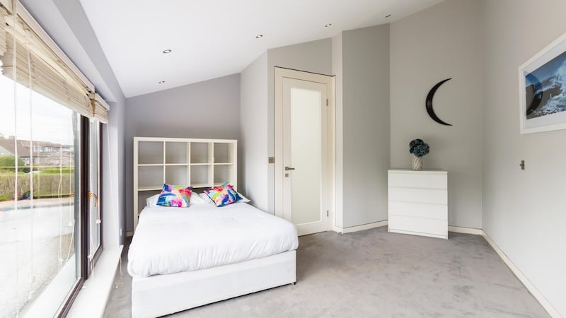 The property is split level which allows three internal floors. Two double bedrooms lie at ground level – and the third is a large room overlooking the front garden. “When we lived here we used this as a music room due to its size and aspect,” says McAdam who has overseen interiors for Bellinter House Hotel and The Wilde Office suites on Merrion Square.