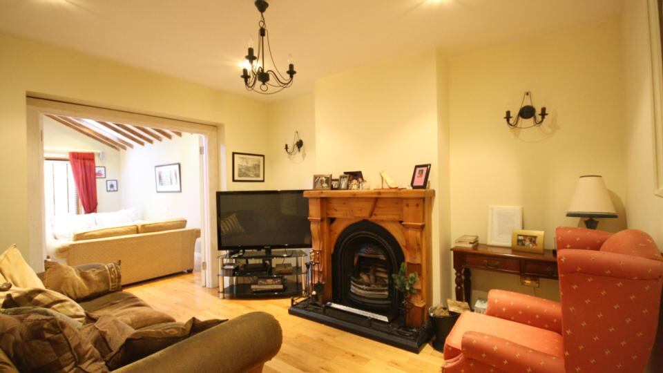 The house has an abundance of sittingrooms. A second, dark room is situated to the rear and leads through to a very smart, vaulted-ceiling drawingroom with beams drawing the eye upwards to roof lights adding further illumination.