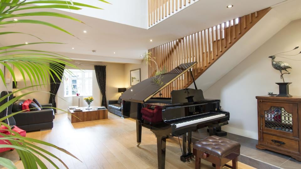 The side extension made space for two large double bedrooms with en suites, one at ground level, the other upstairs. There are also two additional bedrooms upstairs, both doubles, and a family bathroom.