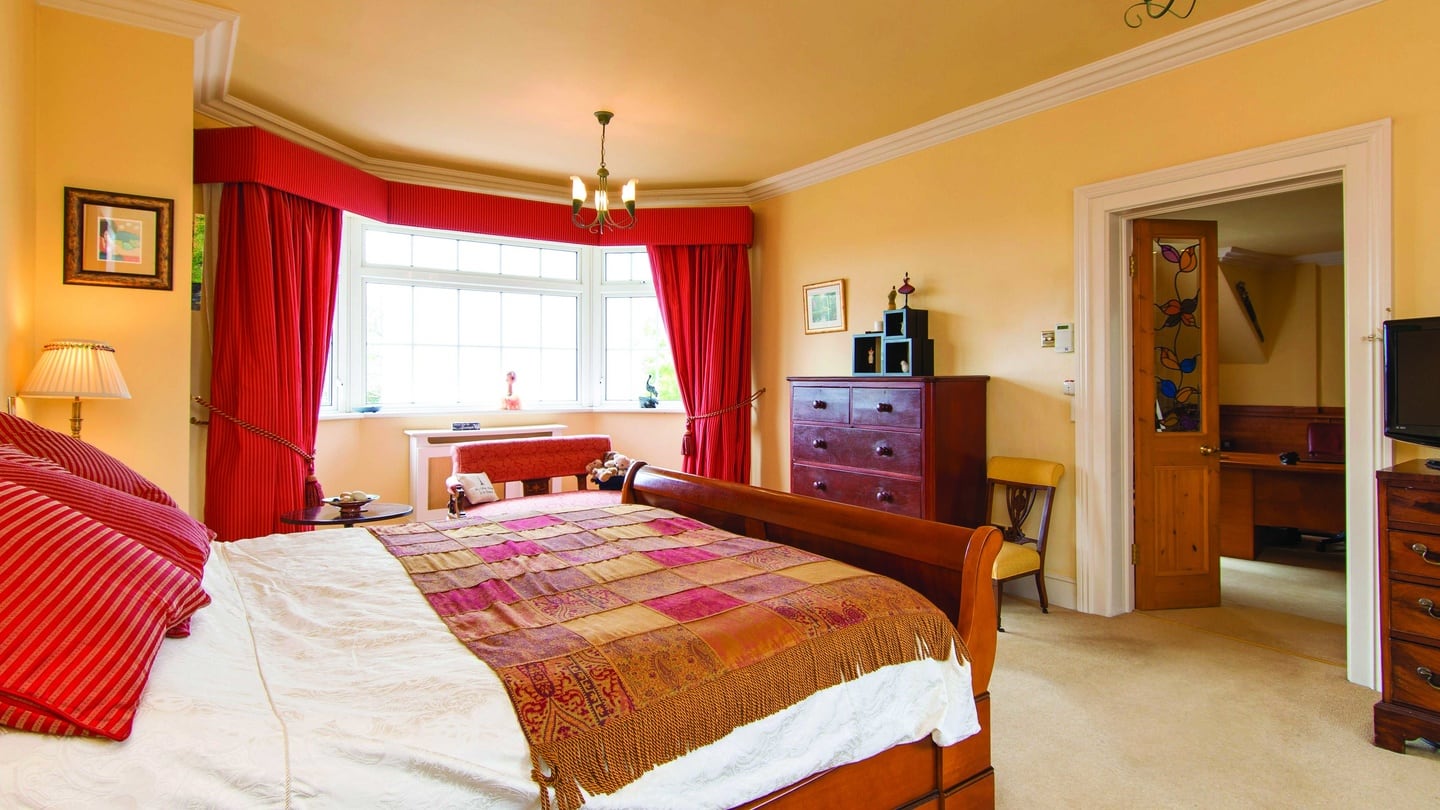 The main bedroom suite includes an impressively fitted study, bedroom with wide bay window, dressingroom and an en suite in blue-grey tiling with Jacuzzi bath. Two other, high ceilinged bedrooms are to the rear and the fourth, up a couple of steps, has an eyrie-like privacy. The family bathroom has a high ceiling, sunken bath and deep cilled window.