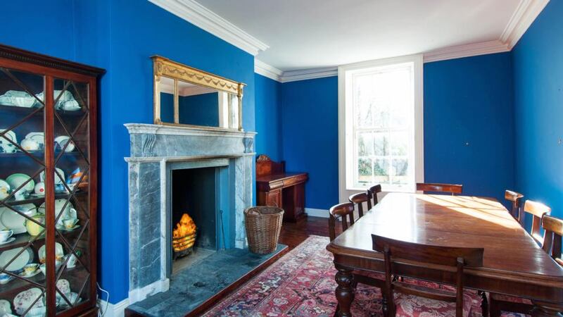 The double-fronted two storey over basement property comprises 197sq m (2,120sq ft) and sits on the south crescent – the part that’s furthest from the hustle and bustle of the main road in Ranelagh. The house has two reception rooms at hall level – a drawingroom which Murphy and Casey used as a library to store their vast book collection, and a cobalt blue diningroom which features a mammoth fireplace. Both rooms have dual-aspect original sash windows with shutters.