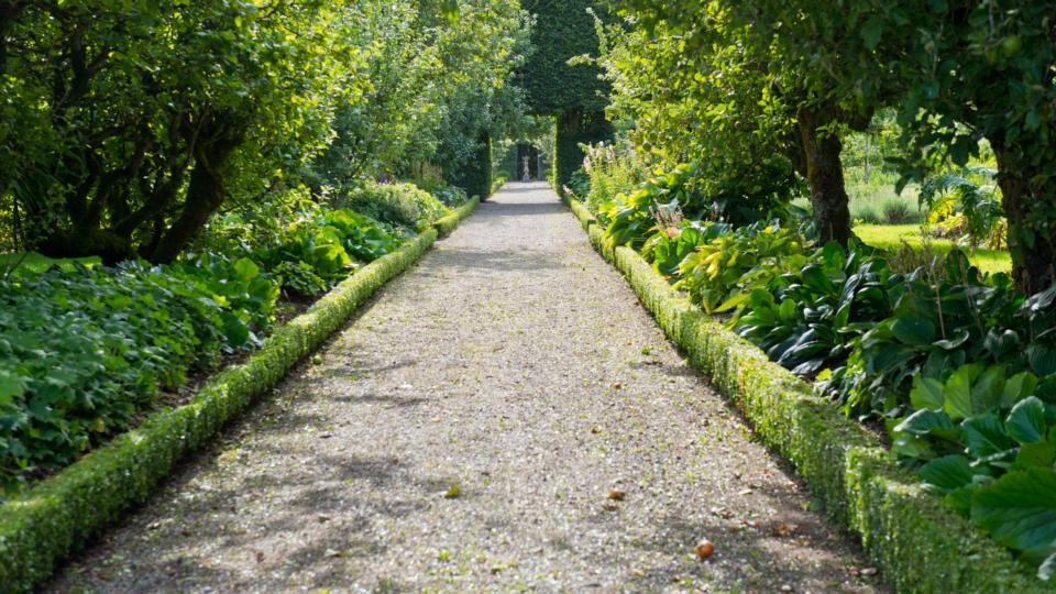 Outside there are stable yards, cattle yards, and curiosities, both elegant and quirky, such as a melon pit (which used horse manure to warm the soil to grow these once-exotic fruit), a shamrock-shaped dovecote possibly built as a folly, lime kiln, Iron Age mound, and a nature trail.