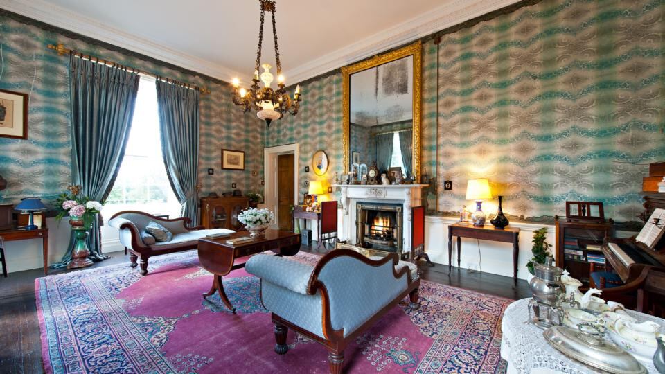 These reveal a wealth of stories about the day-to-day running of the house, although it is just as easy to imagine them coming alive as you wander through the rooms. There is the wide, stone-flagged hallway, and the cosier, but still imposing back hall. The drawing room has its original wallpaper and chandelier; the marvellous fireplaces are intact.