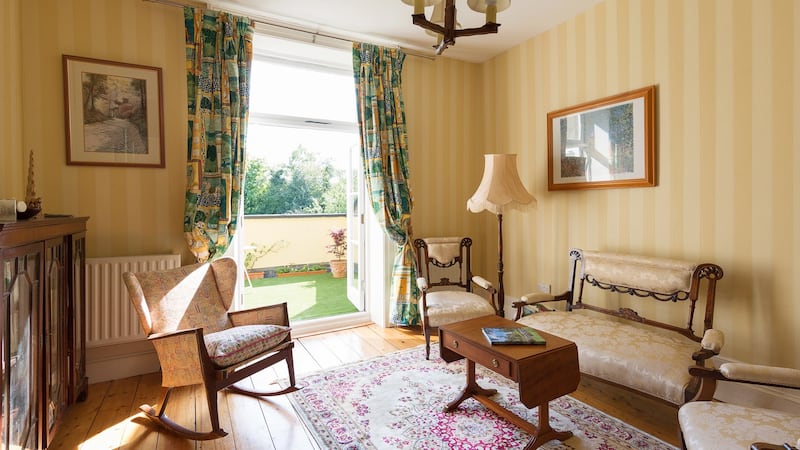 The vast rear garden – it backs on to RTÉ grounds – is clearly a labour of love for the owners. Even on these unseasonably chilly days it looks lovely with its formal box hedging – hundreds of individual plants had to be planted to make what is now a lush classic “knot hedge” garden.