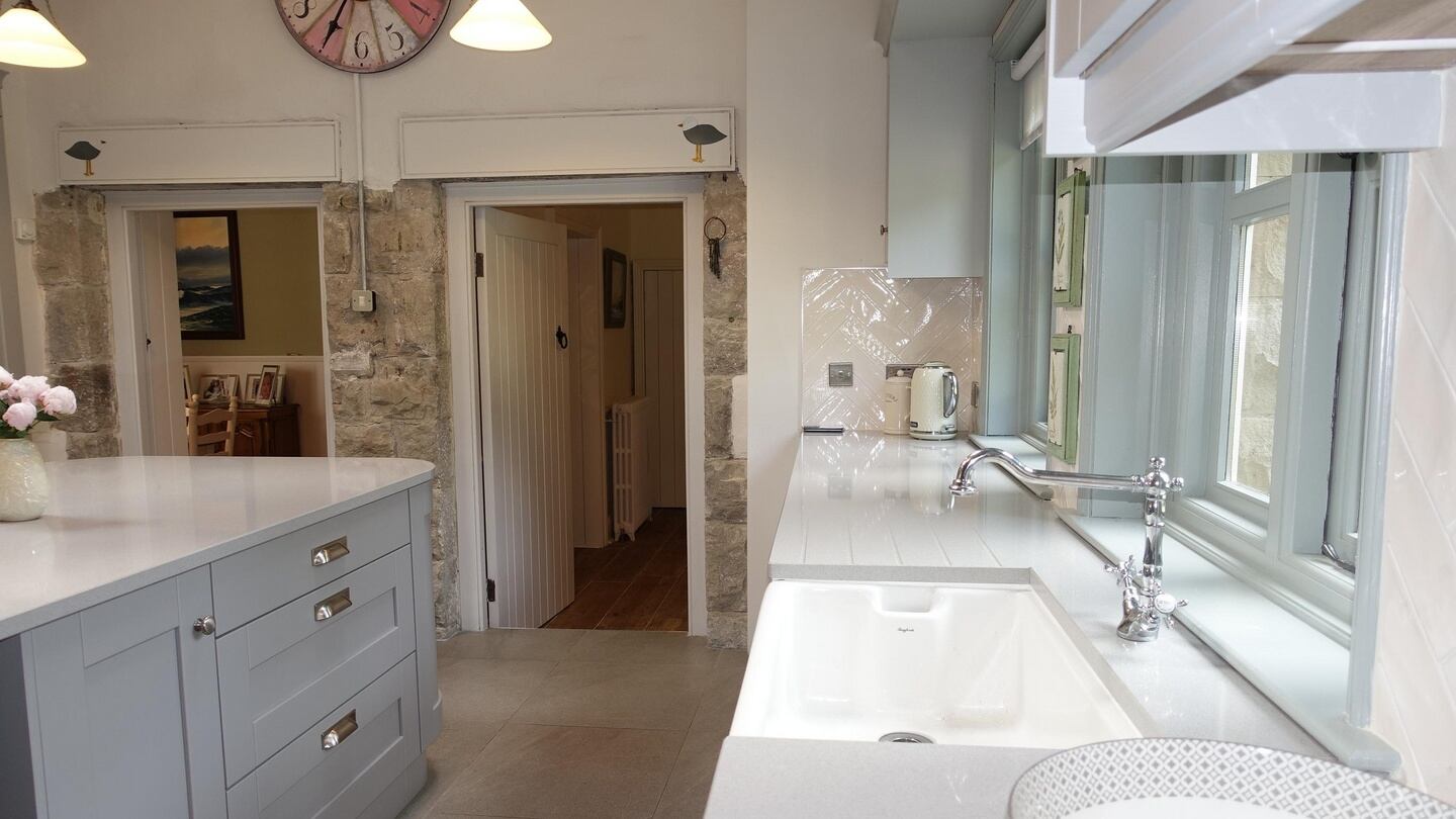 This stone originally came from the original local big house, nearby Fintra House, now demolished. The quartz countertops were sourced from Mountcharles-based McMonagle Stone and make a feature of the Belfast-style sink.