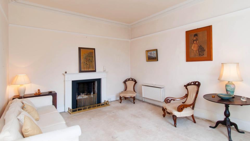 The front garden is south-facing and behind tall hedges, while at the back there is only a flagstoned patio. The amount of work required on this handsome, atmospheric house and the size of the garden may deter some buyers.