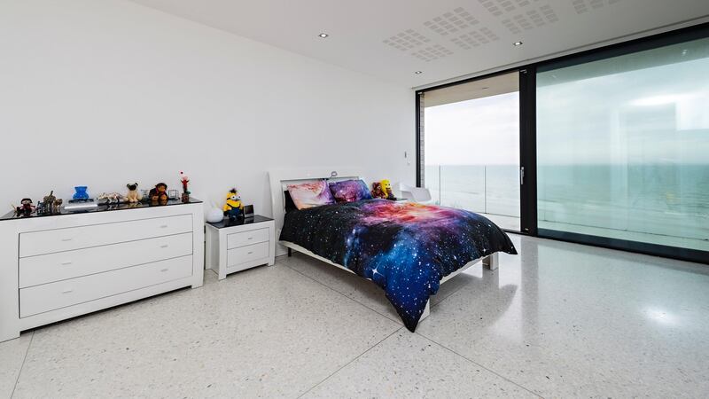 The expanse of glass is incredible. The two sea-facing bedrooms have balconies, while the two to the rear have terraces overlooking an internal courtyard.