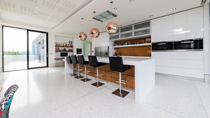 Interiors are high end and high spec with motorised blinds, zoned LED lighting and a Sonos audio system. The 10-foot high ceilings have acoustic panelling to ensure soundproofing.