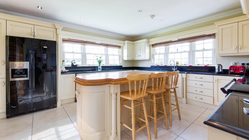 A large house built in traditional country style nearly 40 years ago on 42 acres near Callan, Co Kilkenny, would suit a family with equine interests. Although the owners don’t have horses, there are six stables beside the house and space that could be converted to a sand arena. There’s also a self-contained one-bed unit at the side of the house.
