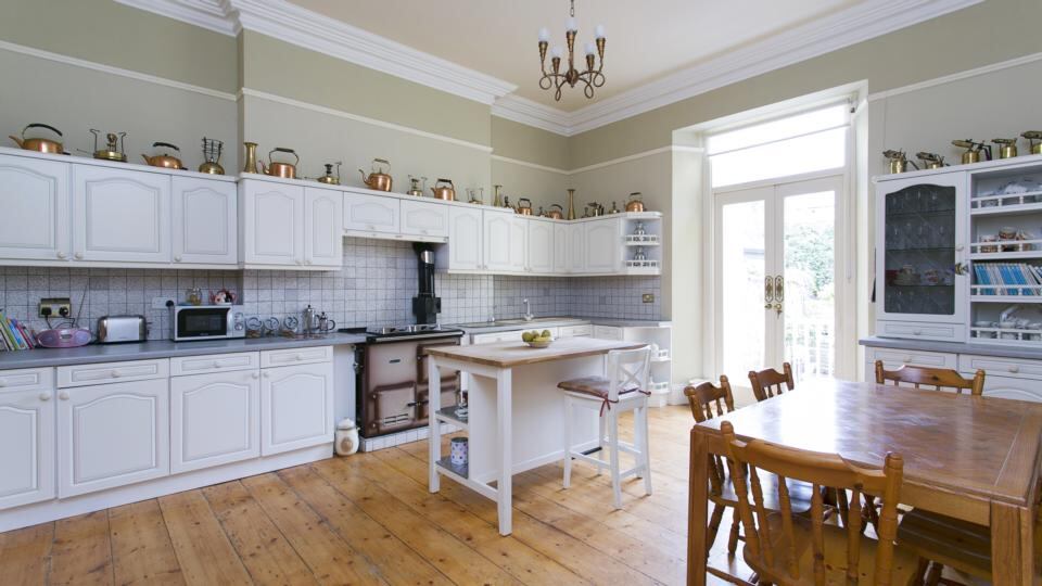 To take full advantage of the uninterrupted sea views, the owners use the room on the first floor as a formal drawing room, a beautifully proportioned space with high ceilings, two tall sash windows and an impressive white marble fireplace – what they thought was a black fireplace came up sparkling white after professional restoration 25 years ago.