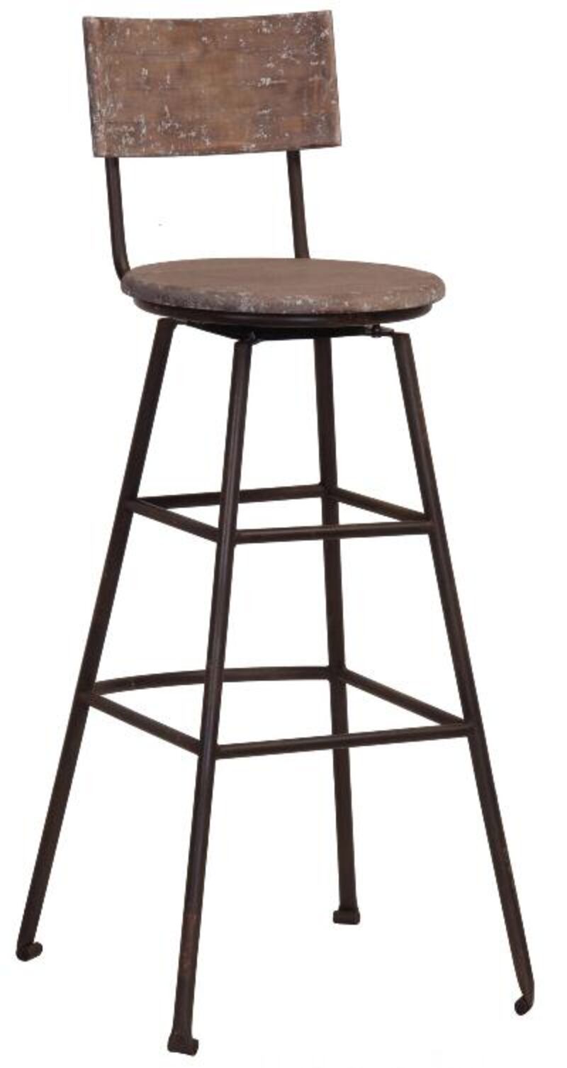 The stools in MacInnes’s kitchen are vintage. The Harlem, €351, and the Canteen (left), a used-wood design, €197 excluding delivery, are similar in style. The bar stools are available from UK-based Alexander and Pearl (0044-208- 508 0411;