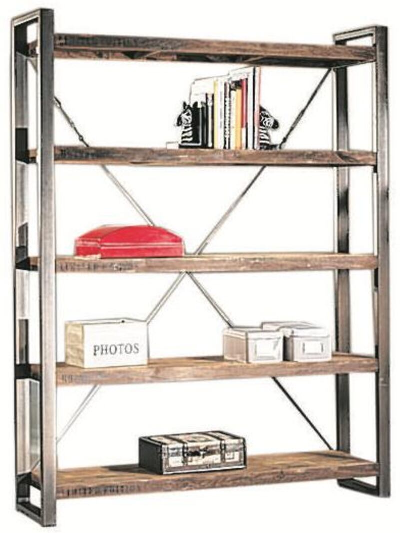) that uses recycled oak from railway sleepers and old buildings to create convincing metallica for a warehouse look. A shelving unit (right) costs €1,349, a dining table €1,349 and a narrow rack, ideal for small homes, €1,099. The online vintage shop Retrorumage (086-8566866;