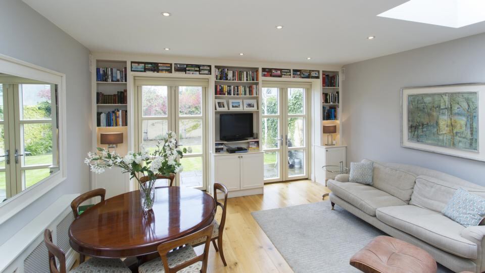 The vendors, who are selling because of an expanding family, have lived for three years in number 40, the last house in the row. The impressive redesign, with its two-storey extension and single-storey family room (added to what was an original two-up-two-down), was carried out by the previous owner. The resulting 157sq m (1,700sq ft) floor area has three reception rooms and a kitchen on the ground floor, three bedrooms and a bathroom on the second. Agents Hunters are selling it through private treaty for €575,000.