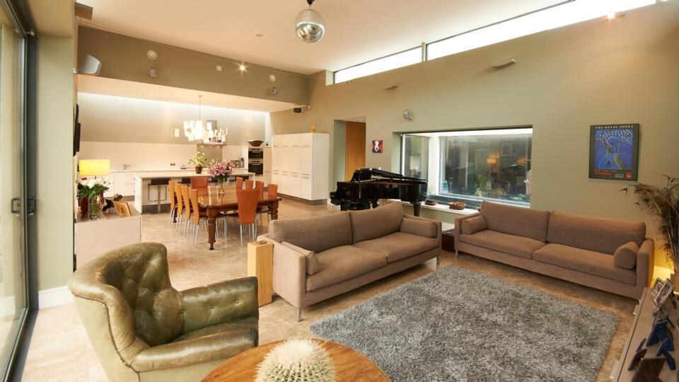 Designed by Brian Rainsford of architecture practice Horan Rainsford who did the Shelbourne Hotel refit, the property has a koi pond that wraps around the house, a geothermal heat pump and solar panels on the roof that give the family hot water on tap.
