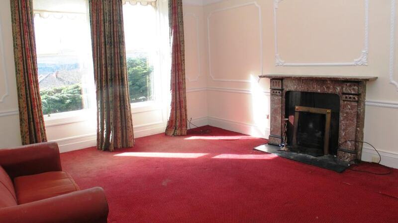 A half an acre of gardens set well off the road provide privacy, and a long driveway leads to a flight of granite steps up to the front entrance. The grandest rooms are at hall level, including two main reception rooms, which have decorative cornicing, ceiling centre roses, dado rails, shuttered windows and marble fireplaces.