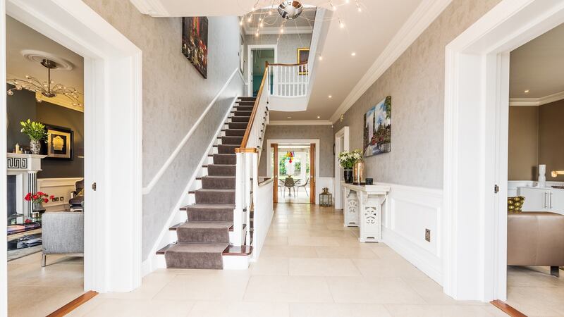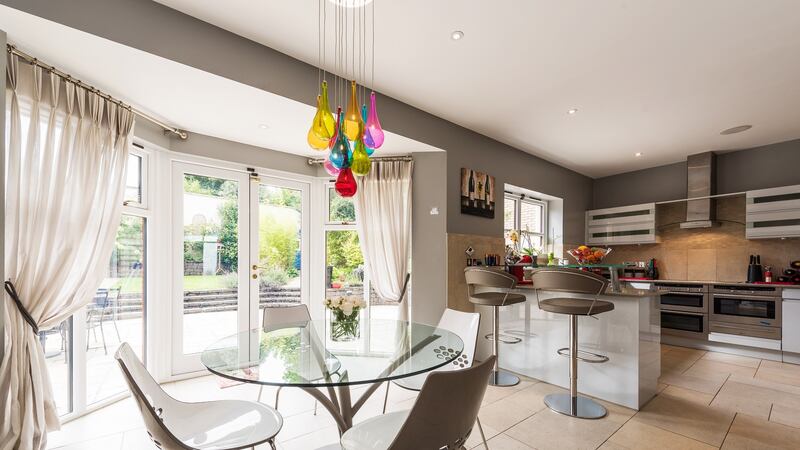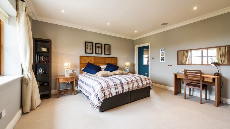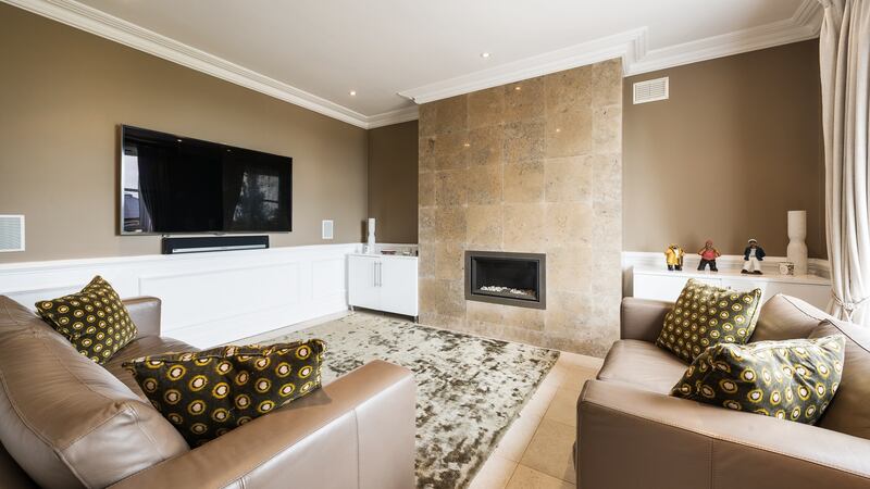 Extending to 270sq m (2,906sq ft) over three floors, the property has five large bedrooms, four of which are on the upper floor – with a fifth at lower ground level. The principal is en suite with a good-sized dressingroom. Views from upstairs take in Lambay Island and the Island Golf Club at Donabate.