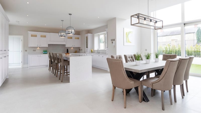 This final offering at Hersil – though not part of the new estate – is a standalone property, and the entrance to the house is from Knocklyon Road. Set on its own grounds behind electric gates, the property extends to 292sq m (3,200sq ft), and is considerably larger than its counterparts within the estate; where the largest property at 195sq m sold for €750,000. The ground-floor space alone is the same size as the four-bed semi-detached properties in the estate which sold for €625,000 measuring 175sq m.