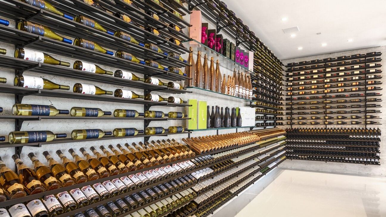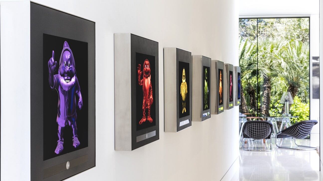 The house has 130 art installations including chrome sculptures of skateboards and guns, an interactive digital work featuring Disney's Seven Dwarfs and a champagne pinball machine. Next to the bowling alley is a massive $200,000 "candy wall" that references Willy Wonka and the Golden Ticket.