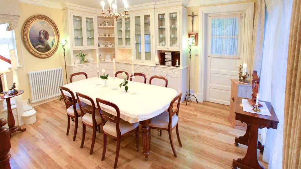 The couple spent €500,000 on the renovation and extension and the owner-builder’s expertise in period properties is evident throughout, with many period features incorporated in the build – such as high ceilings, thick architraves, Georgian-style wardrobes and marble fireplaces.