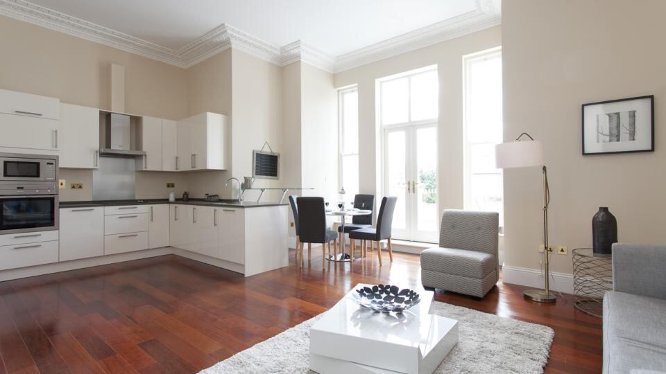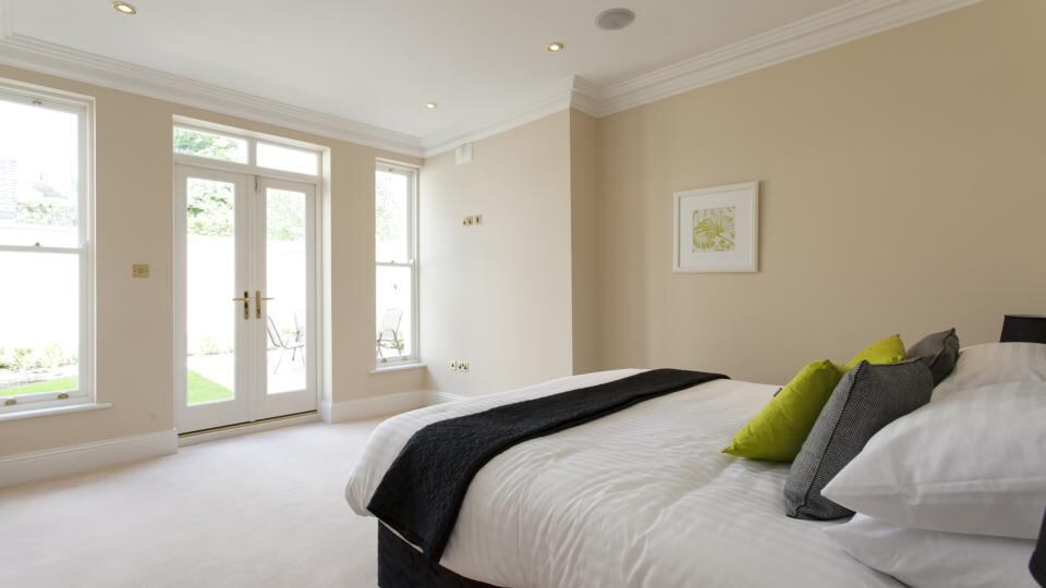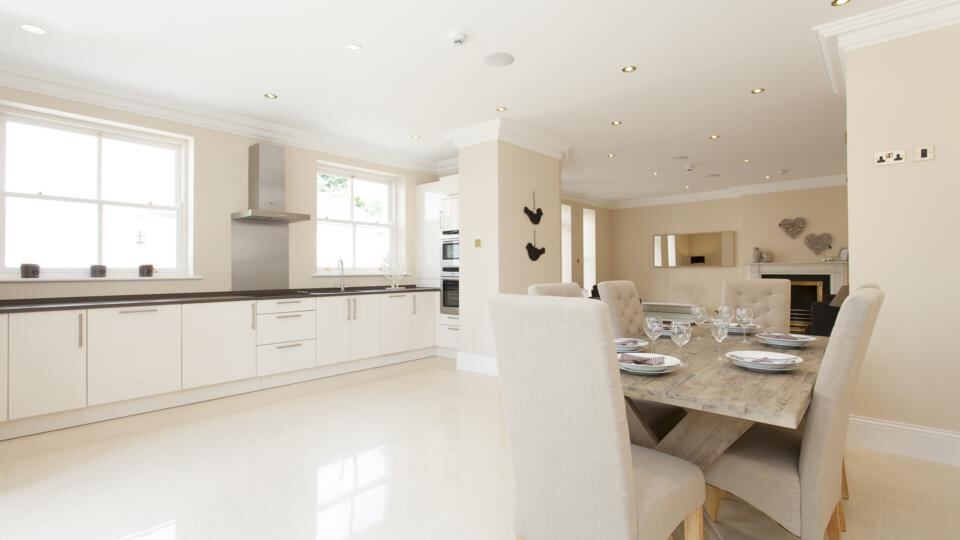 All the apartments have two bedrooms. There are two apartments each on the ground and first floor while the top is a single penthouse. The ground-floor apartments have gardens, the first-floor apartments have terraces. All are now finished to include high-gloss integrated fitted kitchens, marble fireplaces, fitted wardrobes, and high-spec bathrooms and en suites.