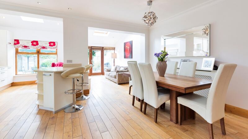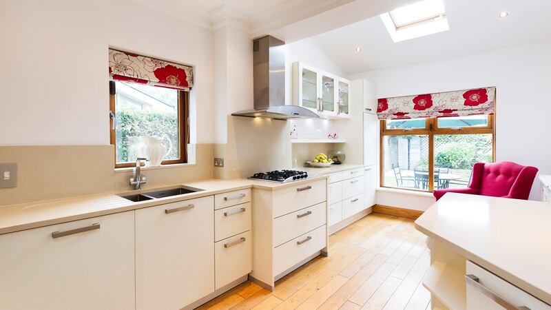 Semi-detached, number 8 is in walk-in condition and has a good-sized 172sq m (1,851sq ft) floor area with five bedrooms (two of them en-suite), family bathroom and a ground floor where a large sitting room leads through double doors to a rear kitchen/dining/family area. The rear, walled garden is south-facing and has a granite-slab patio, lawn, raised beds, nicely flourishing tree and plant life and a shed. Agent Lynam Auctioneers is seeking €830,000.