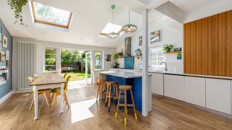 When they bought the house five years ago, the owners – he a designer, she an artist – were pleased not to have to do any big jobs as the previous owners had converted the garage and extended the kitchen to make the house a spacious 149sq m (1,604 sq ft). However, they enhanced and brightened the area by reconfiguring it from two spaces into one, at the same time inserting a clever divider made of slender vertical oak beams. This allows light to flow between the relaxed sitting area with bay window at the front, with a cosy stove in the chimney breast, through to the kitchen/diningroom at the back. The BER is D2.