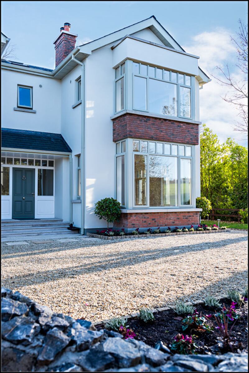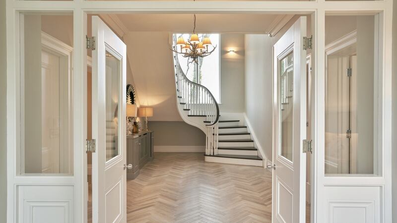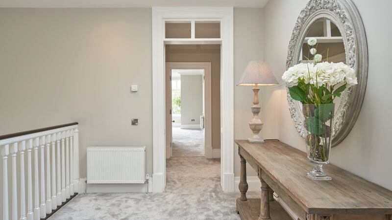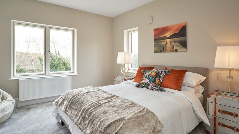 At more than 278sq m (3,000sq ft) this property has been built to a high specification, starting with the curved staircase that winds its way upward in the double-height entrance hall. Designed by Dunnes Joinery, it leads to the first floor where the two main bedrooms each have en suite bathrooms while two further bedrooms share the family bathroom.