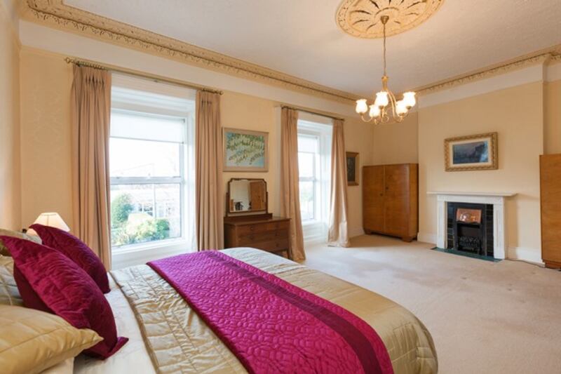 Eight steps lead up to two of the three bedrooms. The main bedroom stretches the width of the house, has two tall windows, a cast-iron fireplace and like the drawingroom below, elaborate cornicework. It’s a big room and new owners might want to install an en suite.The double bedroom next door, and the bedroom on the top return, up another short flight of stairs, both have mirror-fronted wardrobes.