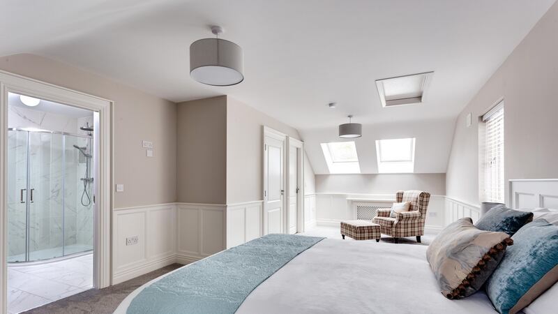 Three of the four double bedrooms are on the first floor. Two have en-suite bathrooms while the master, on the second floor, has light on three sides and a naturally lit shower en-suite. The houses have lots of storage including a walk-in hot press and lawned back gardens.