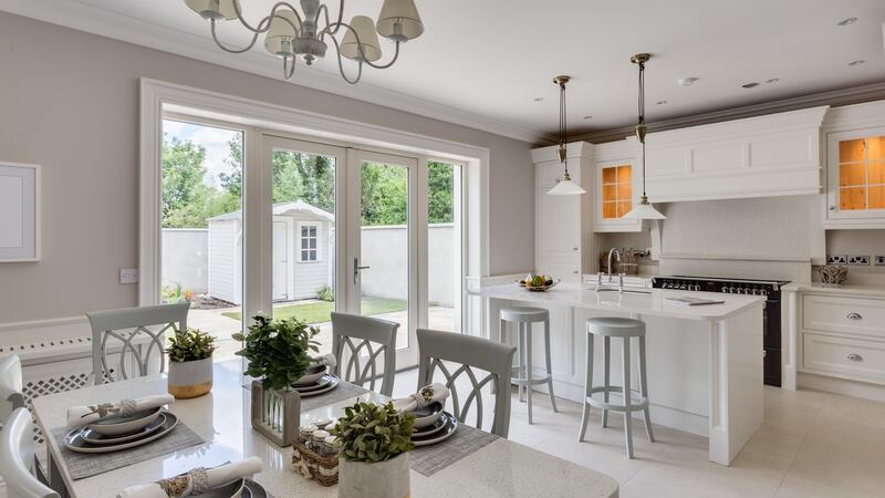 The redbrick-fronted houses have granite window sills, stringcourses and the walls to the front are capped in the stone. Inside, the wood-panelled interiors feature several customisable décor options; a choice of finish on the laminate floors; two fire-surround options and in the quartz-topped in-frame kitchen by Christoff, you can choose how best to spend €2,500 budgeted for appliances from PowerCity. Ceiling heights are 9 feet at hall level.