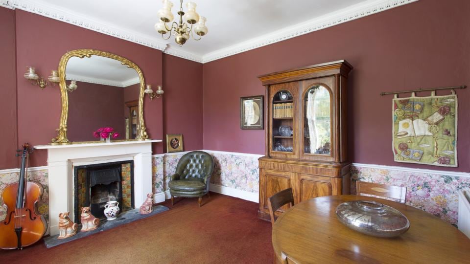 Once inside, there’s a bright hallway, and the matched pair of dining and drawingrooms to the right and left that you’d expect from a house of this era, and which retain a whiff of their earlier decor.