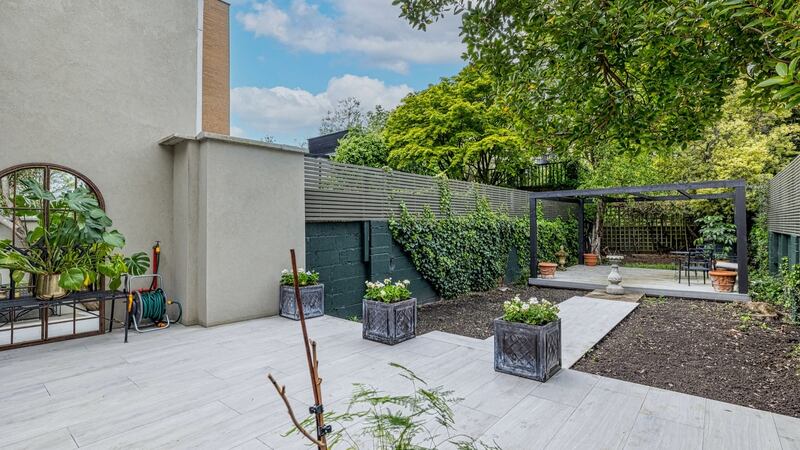While the interior is all done, there is scope to add value and space in the garden. Landscaped with a pergola in the middle, it has the same flooring used outside as indoors, just in a different, non-slip finish. You could build a garden room to the rear of this very private green space.