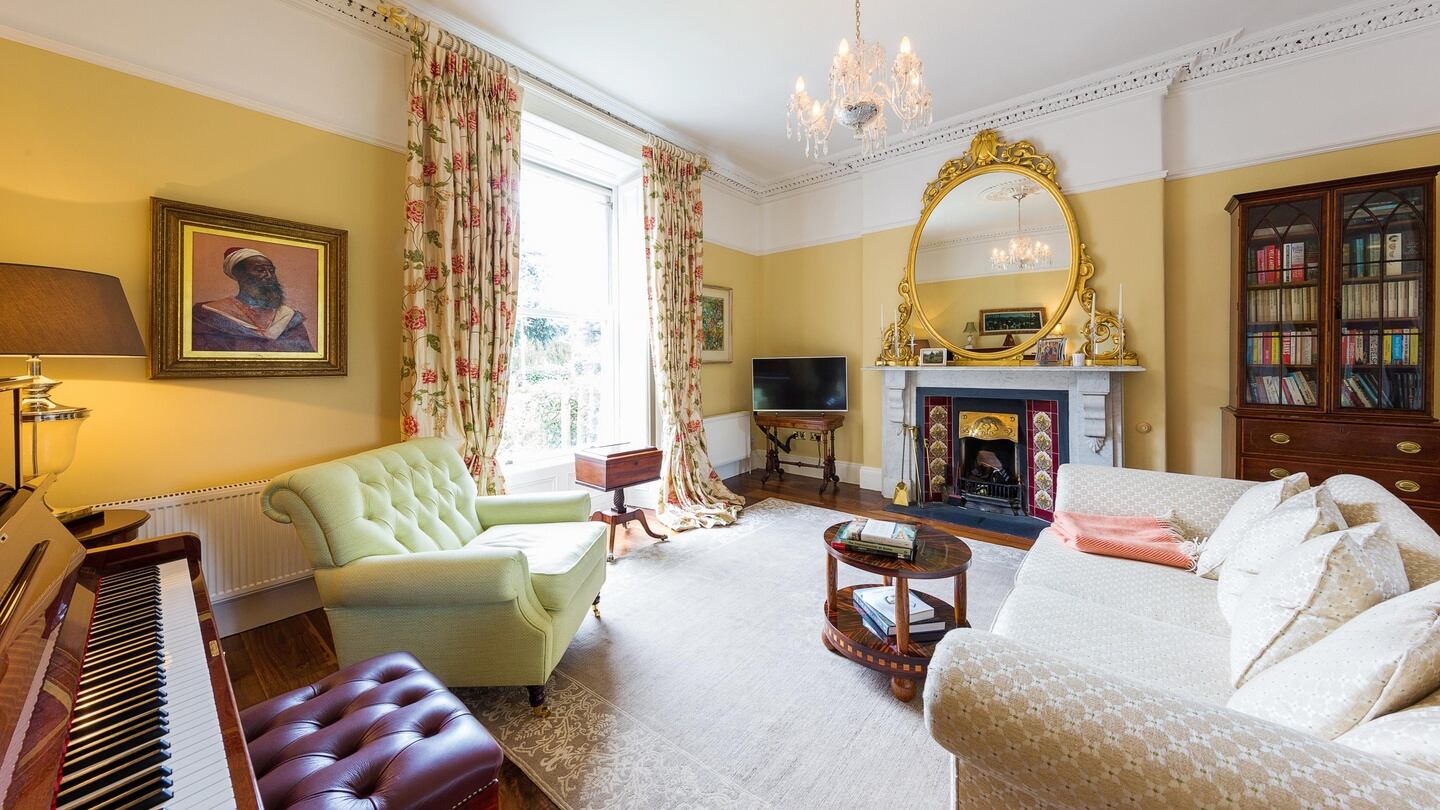 A pair of reception rooms sit to the left of the hallway upstairs. There is a very nice pair of art deco-style fireplaces and, if you fall in love with the matching pair of French gilt mirrors, the owners are very happy to talk. To the right is a study and toilet, with an angular shape – remember, this is one of the double-fronted houses on the curve of the road.