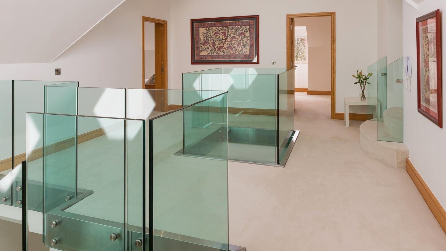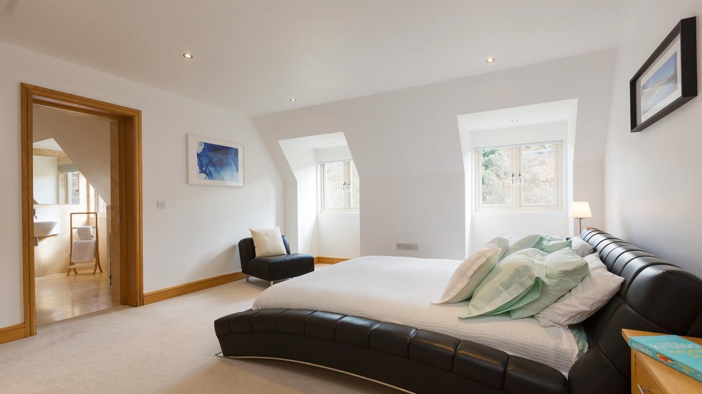 The second wing comprises the living room, a large space whose focal point is a Stoveax insert fire. Above is a galleried landing that leads to two of the bedrooms.